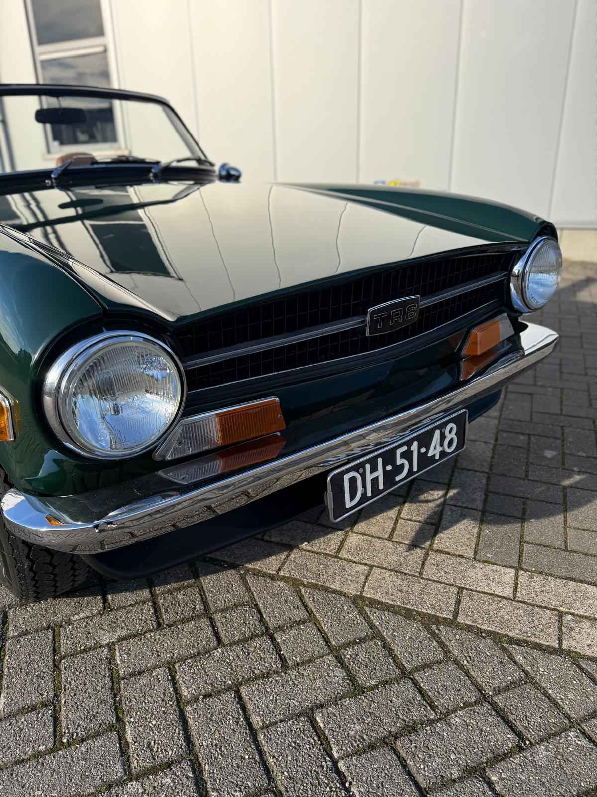 Deze TR6 verkeert in zeer goede conditie. De carrosserie is hard en de lak heeft een diepe glans. Het chroomwerk spiegelt zoals het hoort. Ook technisch is er niet op de auto bespaard: de motor trekt krachtig door en de versnellingsbak schakelt strak.